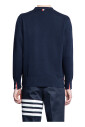 Elevate your style with this navy Thom Browne knit V-neck cardigan featuring a button closure with signature grosgrain placket, back signature grosgrain loop tab, buttoned cuffs with signature grosgrain placket, and ribbed hem and cuffs for a relaxed fit. Model is 187 cm tall, with a chest of 90 cm, waist of 73 cm, and hips of 92 cm.