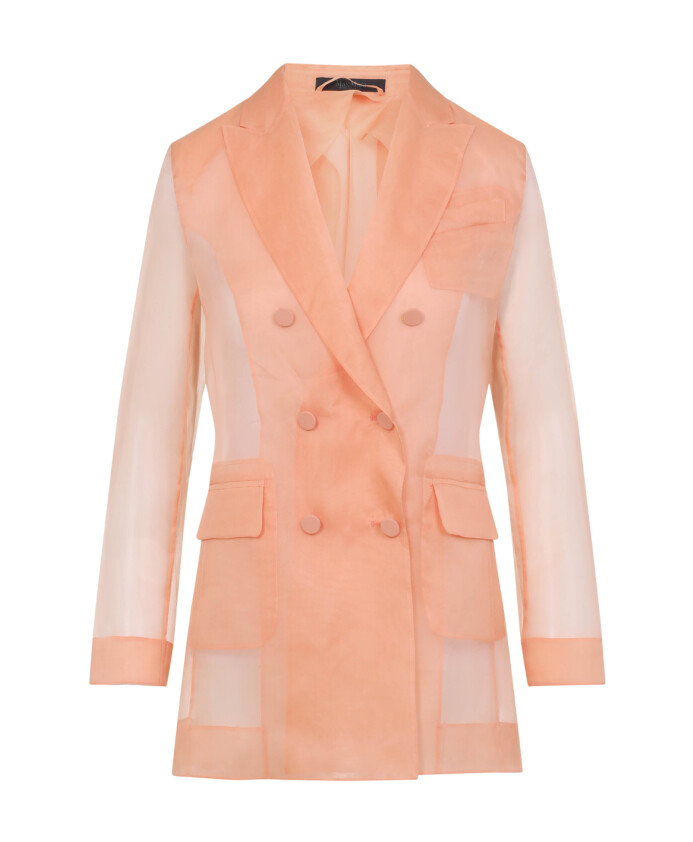 The Max Mara Sheer Organza Jacket offers a sophisticated touch to any ensemble with its delicate design and elegant silhouette. Perfect for layering over evening wear or elevating a casual outfit. Key attributes: Pink | Organza | Lightweight | Button closure | Sheer fabric | Long sleeves | Notched lapels | Dimensions & fit: Regular fit | Composition & care: 100% Organza | Dry clean only
