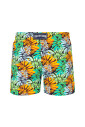 Introducing the Vilebrequin Elastic Swim Shorts for men, perfect for beachwear. These swim shorts feature an adjustable elastic waistband with zamac drawstring and Vilebrequin engraved details. They also come with side pockets, a back pocket with flap and velcro closure, and two eyelets at the back. With a leg length of 36.8 cm in size M, these shorts offer a shorter version of the classic Moorea style. Made from 98% polyamide and 2% elastane, these swim shorts showcase the Jungle print.